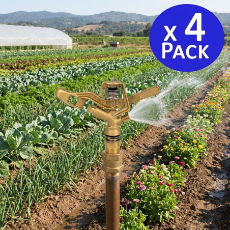 El pack incluye 4 aspersores, perfecto para cubrir varias áreas de riego en un mismo espacio.