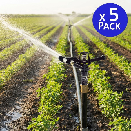 Aspersor de medio caudal con boquillas de latón, con conexión macho 3/4" para jardinería y agricultura. Recomendado para ceral, remolacha, alfarfa, hortalizas, etc.
