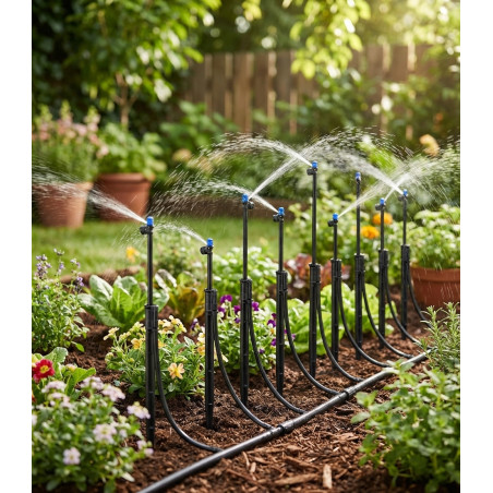 Microdifusor ajustable 180º con estaca 31 cm (Pack 10) distribuye el agua de manera uniforme?