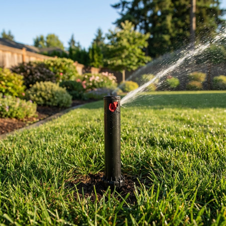 Aspersor 1/2 de alcance 4,3 a 11,6 m y ángulo regulable de riego.