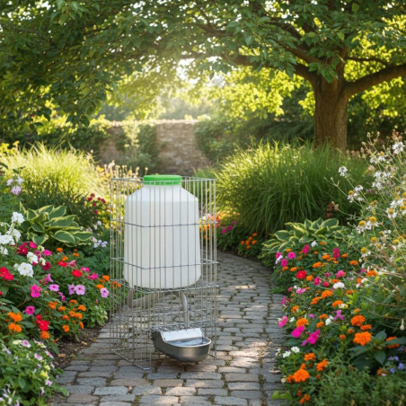 Este bebedero de aluminio con depósito de agua de 8 litros está fabricado en España, cumpliendo con altos estándares de calidad.