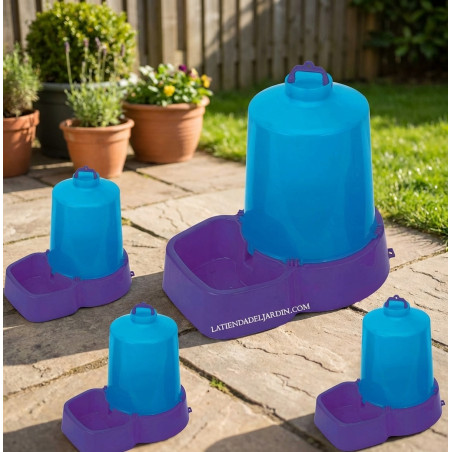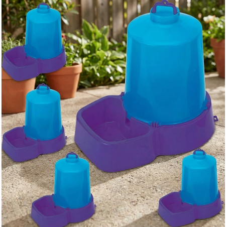 Bebedero Botella para perros y gatos con capacidad de 8 litros. Fabricado en plástico resistente con medidas de 25x34 h. cm. Incluye 5 unidades en el pack, con 1 año de garantía. Comedero de alta calidad fabricado en España.