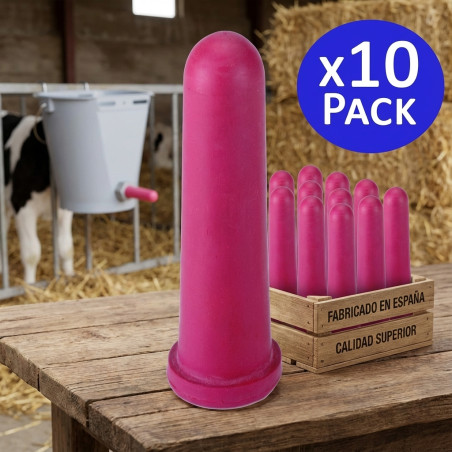Tetina para terneros en pack de 10 unidades, fabricado en España y con un modelo universal. Hecho con material de alta calidad para una mayor durabilidad.