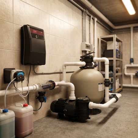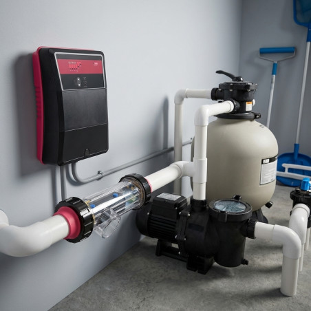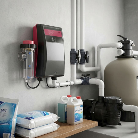 Este clorador salino está recomendado para piscinas de hasta 160 m³ de capacidad.
