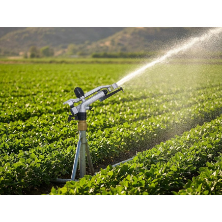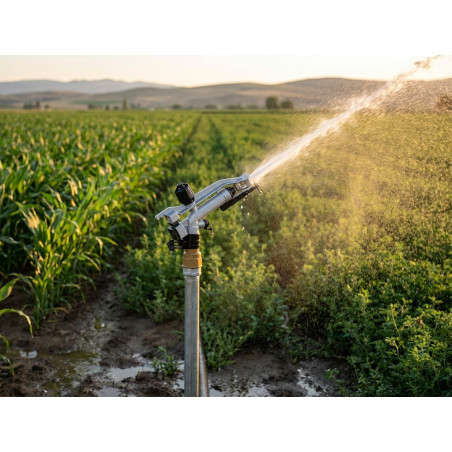 El ángulo de riego en el Cañón de riego Twink se ajusta fácilmente mediante un mecanismo giratorio en la base del aspersor.