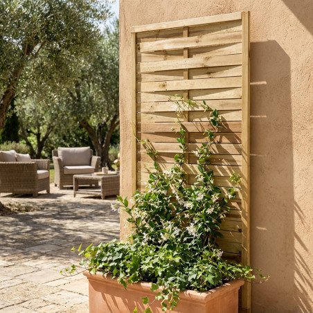 Panel decorativo de madera recto, ideal para jardines, terrazas y patios.