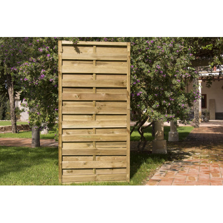 Panel decorativo madera recto 90 x 180 cm, ideal para terrazas y jardines. Obtenga un resultado altamente decorativo, alcanzando la ocultación o delimitación deseada en su jardín, terraza, etc. Ideal para acompañar con un macetero ya que facilita la sujeción de plantas trepadoras y enredaderas. Madera tratada al autoclave, 100% procedente de bosques bien gestionados. Fabricado en España. Marca Suinga registrada, no se permiten copias ni vendedores externos.