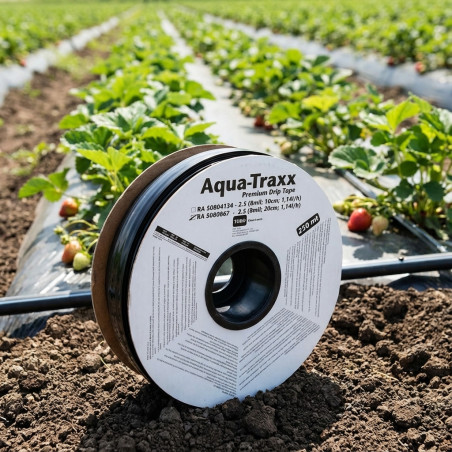 Cinta de riego por goteo 16mm 1000 mts. Galga espesor de pared 8 mil. Goteros 1,16 l/h cada 30 cm Uso ideal para: Viveros de plantas de frutos, viveros de majuelos, viveros de plantas para áreas verdes. Generalmente encuentra su justa colocación en la horticultura especializada (fresa), patata, tomate, melón, berenjena, espárrago, cultivo de semillas, pequeños frutos, etc., en virtud de la sencillez de puesta en obra. A paridad de medición, es significativo que la solución permite una buena uniformidad de distribución a un coste contenido de las instalaciones. Galga 8000, 8 milésimas de pulgada de pared. Goteros separados cada 30 cm. Caudal 1,16 l/h. Bobina de 250 mts. El nuevo sistema con salida protegida puesto a punto por la oficina de investigación, permite el soterramiento del P1 eliminando problemas de succión de barro y detritos y reduciendo al mínimo la posibilidad de intrusión de las raíces. El sistema actúa a través de una “ventanilla” obtenida con una particular elaboración del agujero de emisión. Durante el ciclo de riego la ventanilla se levanta y garantiza la salida regular del agua, al final del ciclo de riego vuelve a la posición. 4 Bobinas 250 mts. El gotero plano, de apenas 2 mm espesor suprimir esto y soldado a la pared del tubo, elimina prácticamente todas las pérdidas de carga. El filtro en ingreso del laberinto, provisto de ocho agujeros de paso, excluye la posibilidad de obstrucciones. El laberinto de flujo turbulento con nuevo perfil para una elevada uniformidad de emisión, elimina la posibilidad de sedimentación incluso a bajas presiones de ejercicio.