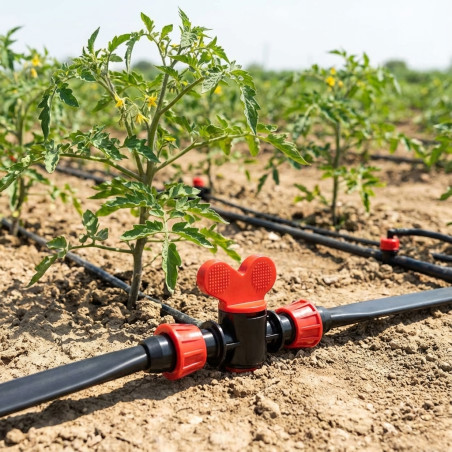 Valvula cinta de riego por goteo es un accesorio de riego por goteo fabricado en España de máxima calidad. Este pack incluye 50 llaves de paso de medida 16mm que permiten regular el paso de agua entre cintas de goteo.