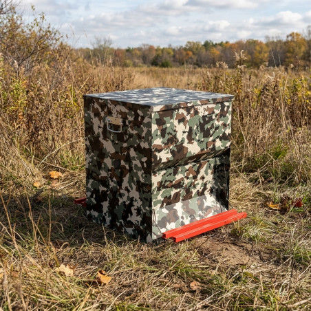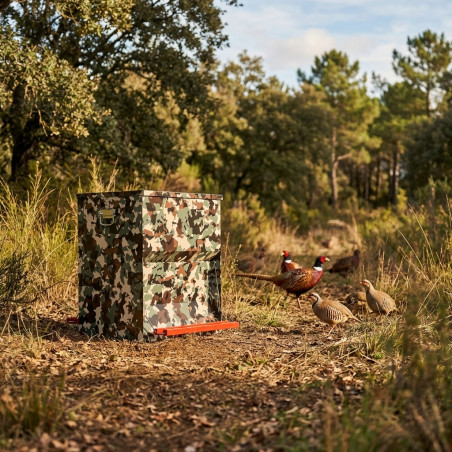 Comedero Tolva Aves SAFE-FEED de 50 Kg (83,5 L) con acabado camuflaje. Alta capacidad para hasta 40 aves, ideal para exteriores, protege el pienso seco y reduce la frecuencia de recarga.