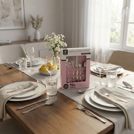 Ideal para uso diario, este juego de cubiertos profesional aportará un toque de sofisticación a tu cocina y comedor. Su acabado pulido y su diseño atemporal se adaptan a cualquier estilo de decoración. Invierte en calidad, durabilidad y estilo con nuestra cubertería de acero inoxidable, el aliado perfecto para crear momentos memorables alrededor de la mesa.