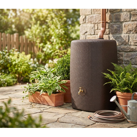 Depósito decorativo para agua de lluvia 300 litros, 40x80x118 cm, marrón. Ideal para recolectar agua de lluvia de forma decorativa en tu jardín.