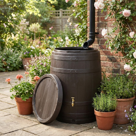 El depósito tiene una capacidad de 400 litros, ideal para recolectar una gran cantidad de agua de lluvia.