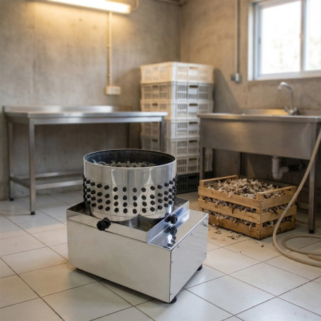 Desplumadora para aves automática. Fabricada en acero inoxidable. 1 año de garantía. Fabricada en España. Tenemos todos los repuestos que necesite para ésta máquina. Capacidad de 250 a 300 aves por hora. Recomendada para perdices y codornices. Medidas 46 x 37 x 49 cm.