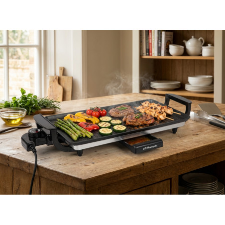 Plancha de Asar Antiadherente 2000W Orbegozo | Plancha Grill 46x25 cm | Tabla de Asado | Parrilla Electrica Cocina
