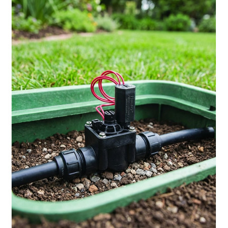 Funciona con programadores eléctricos de cualquier marca del mercado. Permite la apertura y corte del riego de forma manual o automática.