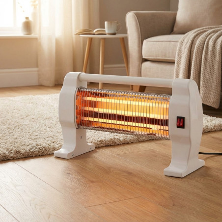 Estufa con tres niveles de temperatura y sistema de seguridad antivuelco. Estufa de diseño compacto y moderno. Calienta de forma uniforme y prolongada. Sistema de apagado antivuelco. Interruptor con luz indicadora. Incluye un asa de transporte en la parte superior. 3 niveles de temperatura 400W, 800 W y 1200W por lo que se caracteriza por el ahorro de energía. Voltaje 220-240V, 50/60Hz.