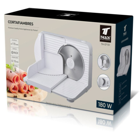 Cortafiambres Eléctrico TH-CF151: Precisión y versatilidad para tu cocina. Corta fiambres, quesos y embutidos con grosores ajustables de 0 a 15mm. Motor de 180W, cuchilla de acero inoxidable, diseño plegable y seguro. Fácil limpieza y almacenamiento, ideal para el uso diario.