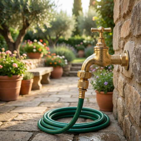 Este grifo está fabricado en latón de alta calidad para garantizar durabilidad y resistencia a la intemperie.