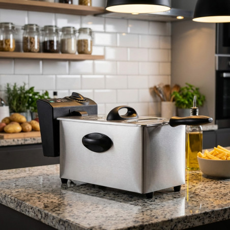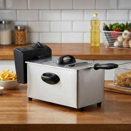 Potente freidora eléctrica de 2000W con capacidad de 2,5 litros, hará que cocinar sea sencillo.