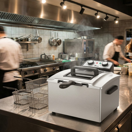 Freidora recomendada para restaurantes, con 5 litros de capacidad para aceite y 3000W de potencia.