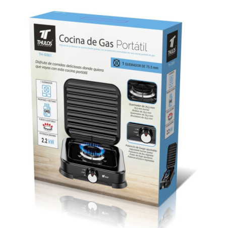 Hornillo a Gas Portátil TH-GS61: Cocina con comodidad en cualquier lugar. Cuerpo de acero inoxidable, compatible con butano/propano y encendido piezoeléctrico. Incluye tapa. Ideal para camping y cocinas auxiliares.