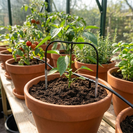 El pulpo de riego por goteo es adecuado para plantas de interior y exterior, así como para macetas y jardineras.