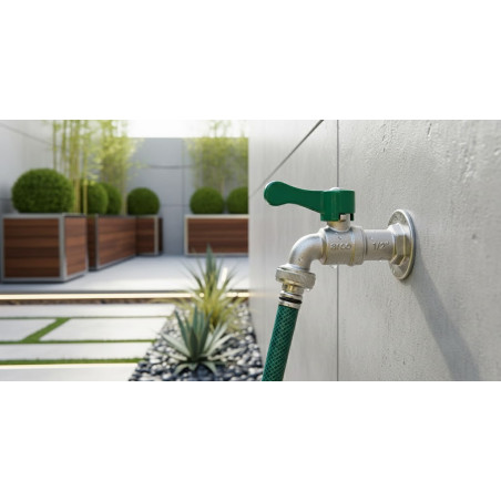 Grifo exterior jardín anti-cal que previene la acumulación de cal y garantiza una mayor durabilidad en su uso. Ideal para jardines tanto privados como públicos.