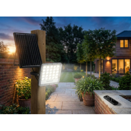 Eficiencia energética y autonomía total: gracias al panel solar de 20 W separado y al proyector de 100 W, se elimina la dependencia del tendido eléctrico convencional; producto ideal para iluminación exterior profesional, zonas verdes y urbanizaciones que buscan reducir consumos y mantenimiento.