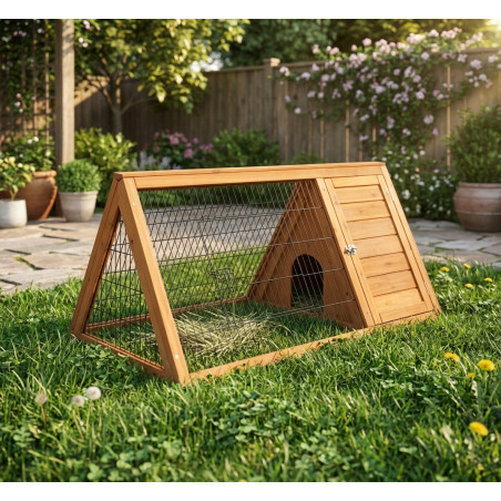 Caseta de madera para conejos de alta calidad, fabricada en España. Ideal para recinto de animales en exterior.
