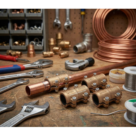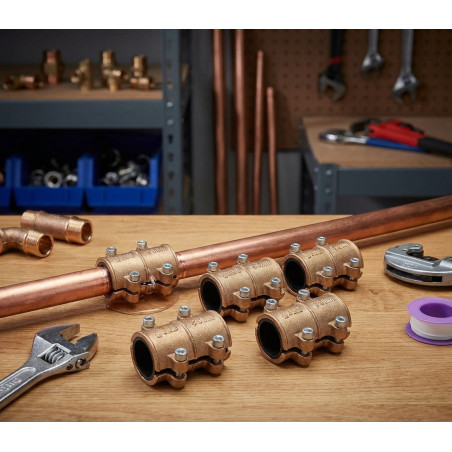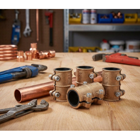 Abrazadera de latón utilizada para taponar agujeros en las tuberías de cobre. Goma interior que impide el paso de agua hacia el exterior. Medida 28mm. Recomendado para tubos de 28mm. Recomendado para sellar agujeros, grietas y puntos porosos. Pack 4 unidades.