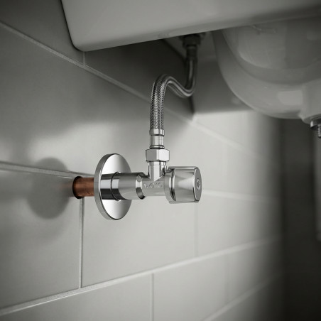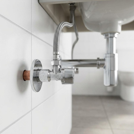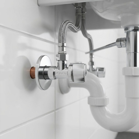 Esta llave de corte escuadra corta antical de 1/2-3/8 pulgadas es ideal para minimizar los efectos de la cal sobre la válvula y permitir cortar el suministro de agua de forma individual en diferentes puntos de consumo.