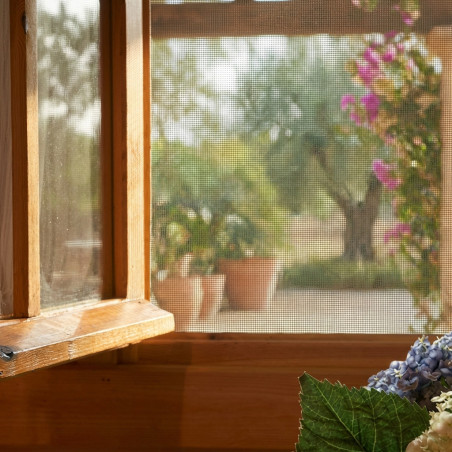 Malla mosquitera que aporta protección óptima contra la entrada de mosquitos e insectos. Recomendado para cualquier tipo de ventana. Modelo universal. Protección ante los insectos. Gramaje: 120gr/m2, Grosor Hilo: 0.35mm, Recubrimiento de PVC: 65%, Hilos por pulgada: 18 x 16. Fabricado en España.