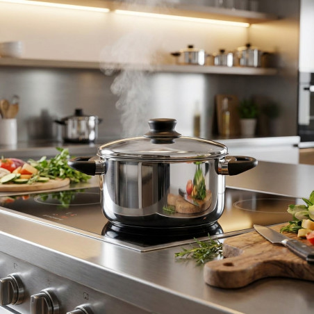 La Olla Lacor Garinox es compatible con todo tipo de cocinas, incluyendo inducción, gas, vitrocerámica y eléctrica, gracias a su fondo difusor que garantiza una distribución uniforme del calor. Esto se traduce en una cocción más eficiente y controlada, evitando puntos calientes y asegurando que tus alimentos se cocinen de manera homogénea. Su acabado pulido no solo aporta un toque de elegancia a tu cocina, sino que también facilita su limpieza y mantenimiento.