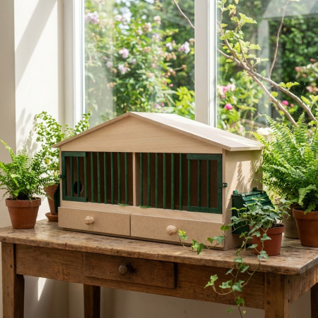 Sí, la jaula de madera con dos departamentos es fácil de limpiar gracias a sus puertas frontales.