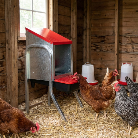 El nido tiene un reserva de huevos con capacidad de hasta 6 huevos, que evita que la gallina pueda picarlos. Puede extraerse fácilmente para su limpieza y desinfección.