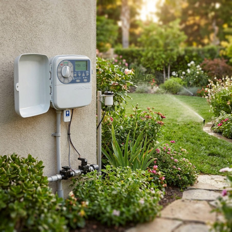 Automatización Inteligente con Tecnología Weather IQ – Ajusta automáticamente el riego según las condiciones climáticas locales, evitando el riego en días lluviosos y optimizando el uso del agua. Ideal para jardines, huertos, céspedes y áreas verdes. Además, ofrece protección con cortocircuito y una caja para exterior. Tiene memoria permanente.