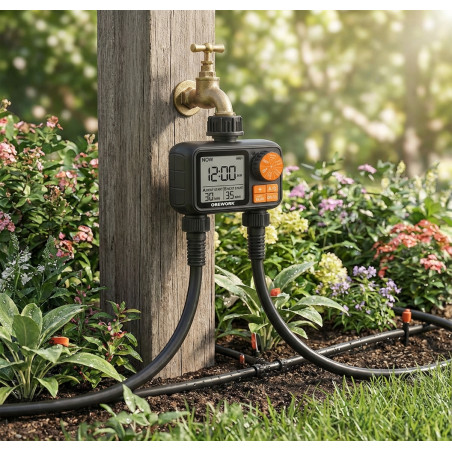 Programador de Riego Orework Pro-Dial | Temporizador de grifo digital para jardin de 2 zonas