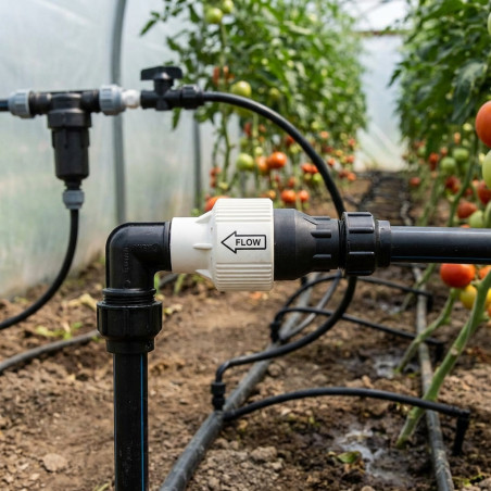 Éste regulador de presión se utiliza en instalaciones de riego por goteo.