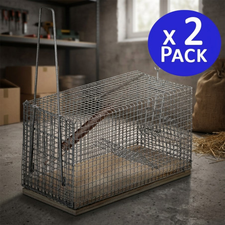 Trampa para ratones vivos con sistema de presión ideal para cazar roedores de manera segura y efectiva. Este pack incluye 2 unidades de trampas reutilizables para jaula, con unas medidas de 29x14x12 cm cada una.