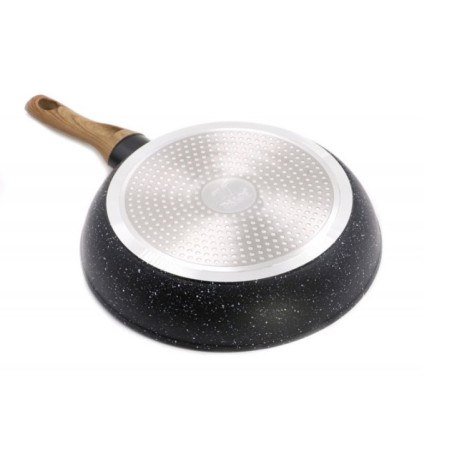 El distintivo mango con efecto madera no solo aporta un toque de elegancia y calidez a tu cocina, sino que también ofrece un agarre ergonómico y seguro, manteniéndose frío durante la cocción para tu total comodidad. Este juego de sartenes es compatible con todo tipo de cocinas, incluyendo inducción, gas, vitrocerámica y eléctrica, lo que lo convierte en una opción práctica y adaptable a cualquier hogar. Con diámetros de 20cm, 24cm y 28cm, tendrás el tamaño perfecto para cada necesidad, desde freír un huevo hasta preparar un guiso para toda la familia.