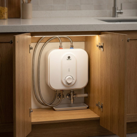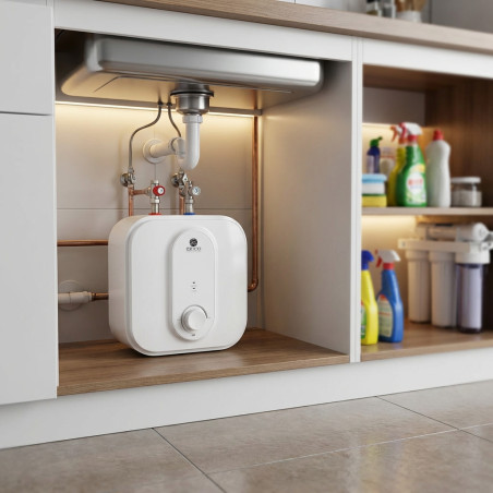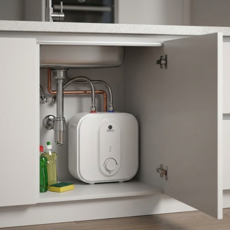 Termo Eléctrico Bajo Encimera Seico 15L: Disfruta de agua caliente al instante con este potente calentador de 2500W. Su diseño compacto y eficiente se integra perfectamente bajo la encimera, optimizando el espacio en tu cocina o baño.