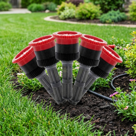 Se puede ajustar fácilmente girando la boquilla en el sentido deseado para obtener el ángulo de riego adecuado.
