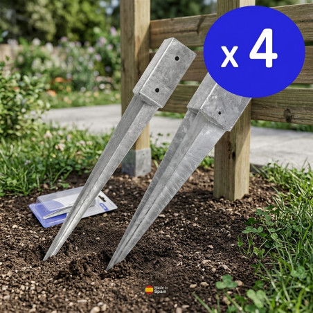 Los accesorios de colocación metalicos son idóneos para la fijación de estructuras de madera como postes, vigas, tutores, vallas. De fácil colocaión y con diseño discreto y eficaz, nos aporta seguridad en nuestra instalación. Perfecta sujección en todo tipo de suelos (ccésped, tierra, hormigón). Fabricado en España. Blister de 4 unidades.