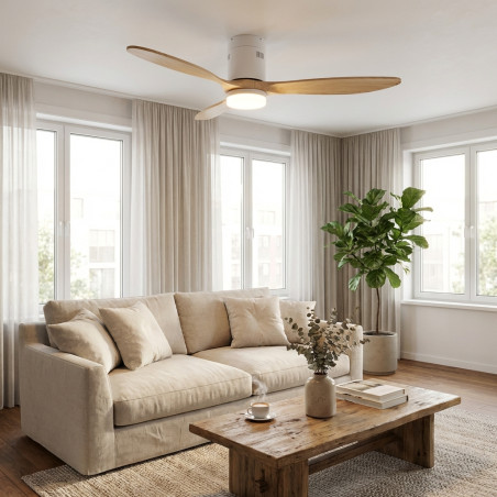 Ventilador de techo con luz LED regulable – Incorpora una lámpara LED de 18W con 3 temperaturas de color (3000K, 4500K y 6500K), ideal para cualquier ambiente. 1100 Lúmenes.
