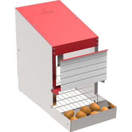 El nido tiene un reserva de huevos con capacidad de hasta 6 huevos, que evita que la gallina pueda picarlos. Puede extraerse fácilmente para su limpieza y desinfección.
