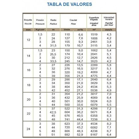 Canon d'irrigation royal d'une portée de 22 à 51 mètres. Pression de service 1,5 à 6 bars. Connexion 2 filetage femelle. Angle d'irrigation réglable qui permet l'irrigation à l'angle souhaité. Arroseur agricole en métal de haute qualité, durable et résistant. LaTiendadelJardin vous propose la plus large gamme de systèmes d'irrigation agricole du marché pour satisfaire vos besoins.