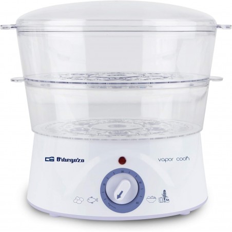 Cuiseur vapeur avec 2 récipients et un récipient spécial pour le riz d'une capacité de 5 litres et d'une puissance de 400W. Ce cuiseur vapeur est idéal pour préparer des repas sains rapidement et facilement.