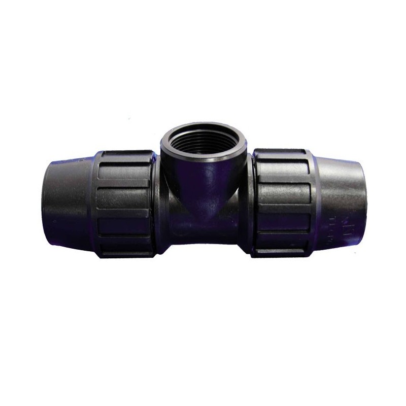 Accessoire pour tuyaux en polyéthylène de haute qualité fabriqué en Espagne. Ce raccord peut être utilisé dans les travaux de génie civil et les installations d'irrigation, supportant des pressions jusqu'à 16 bars. De plus, il est compatible avec les canalisations haute et basse densité. Disponible dans des tailles de 20 à 90 mm, avec des équivalents en pouces tels que 20 mm = 1/2, 25 mm = 3/4, 32 mm = 1, 40 mm = 1 1/4, 50 mm = 1 1/2, 63 mm = 2, 75 mm = 2. 1/2, 90 mm = 3.