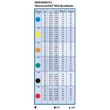 Aspersor 1 1/2" circular alcance 19,2 a 29,6 m y ángulo riego 360º.